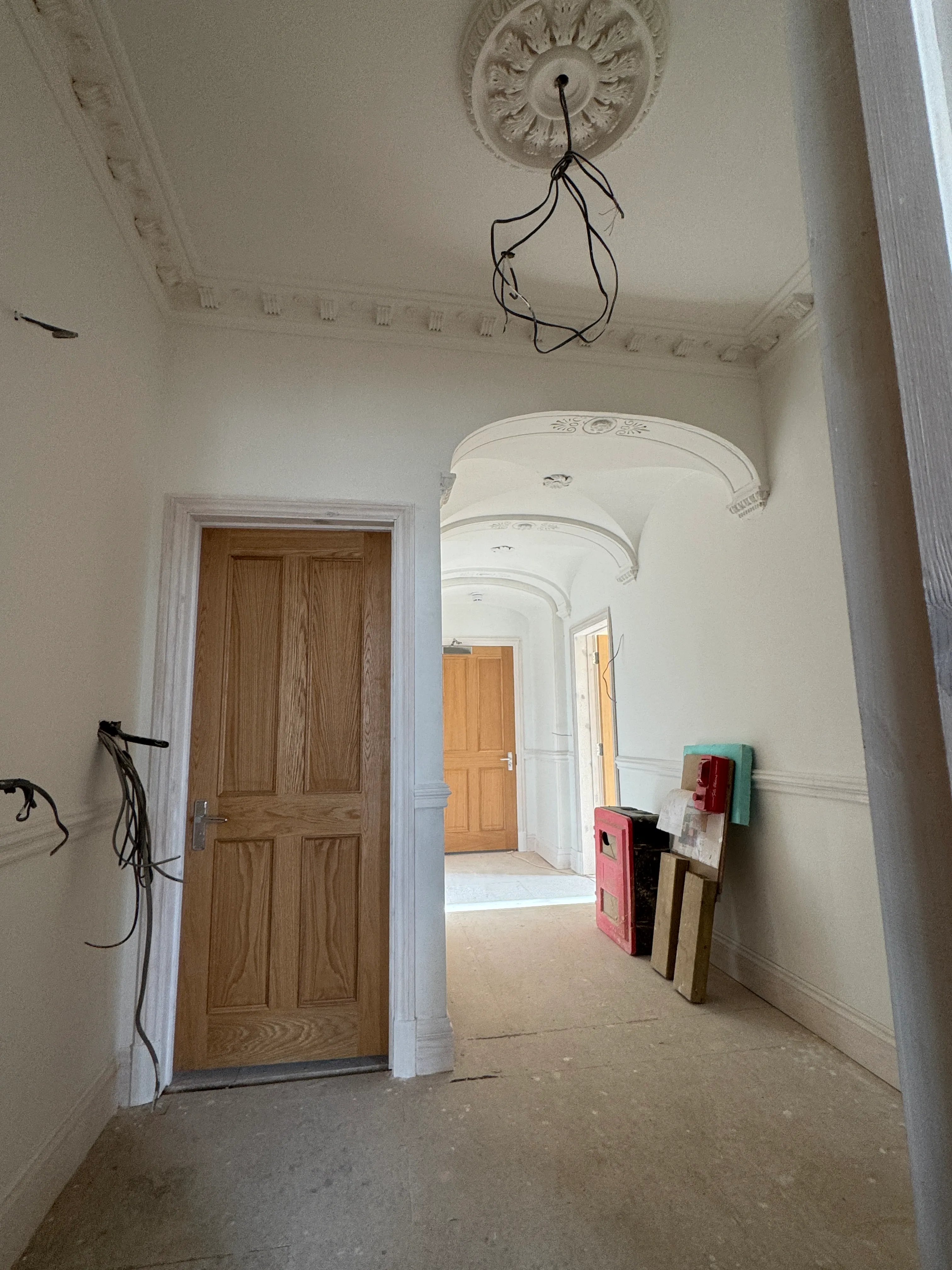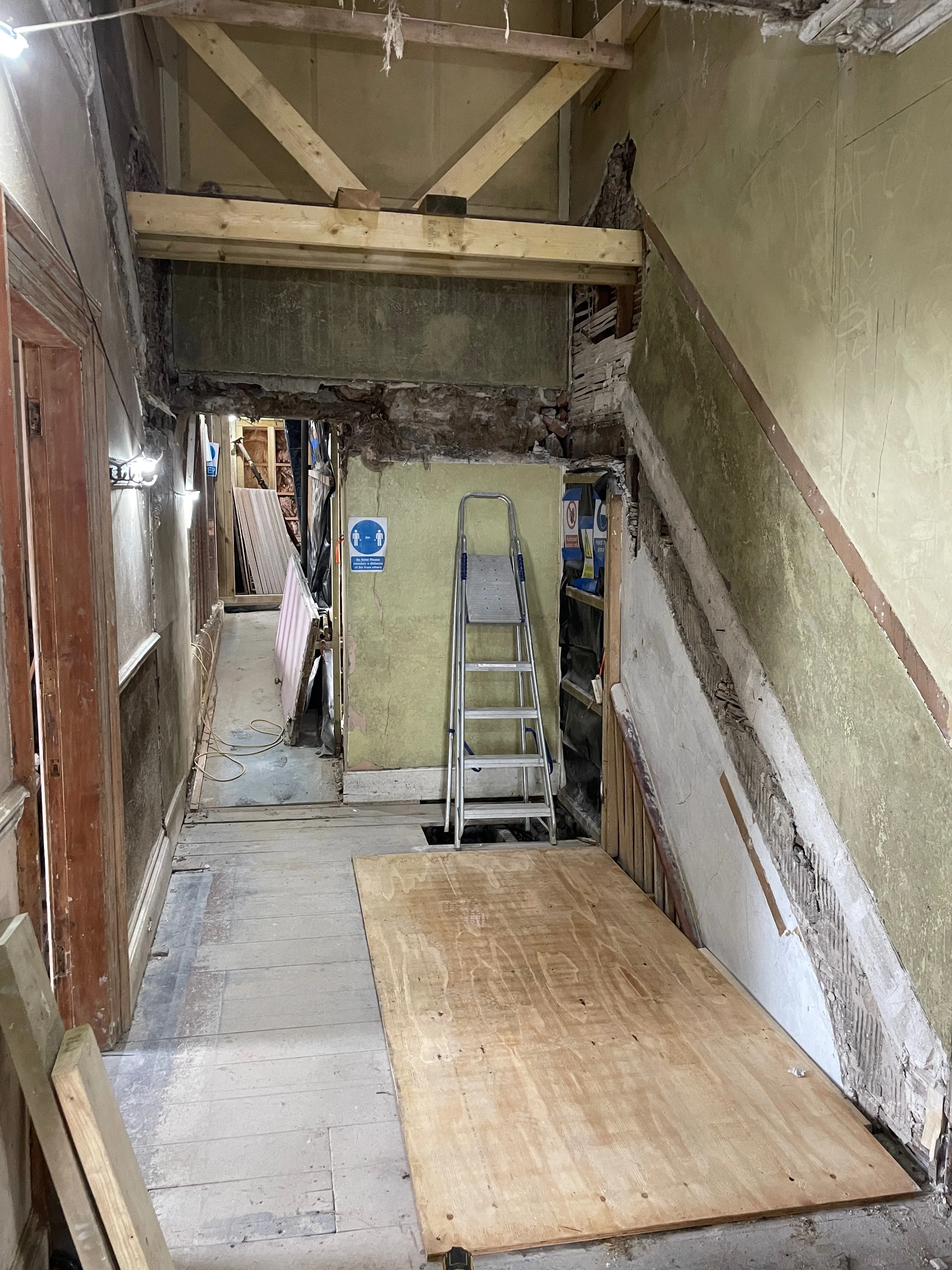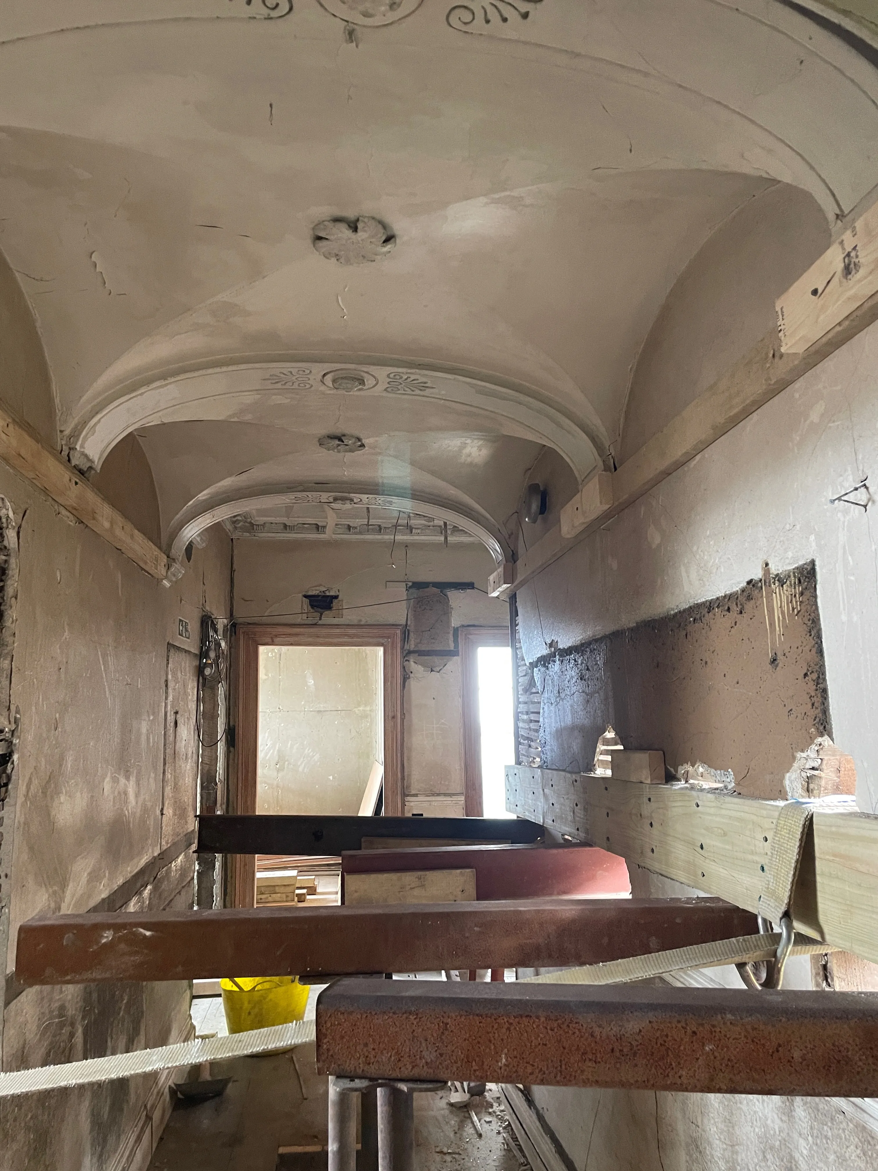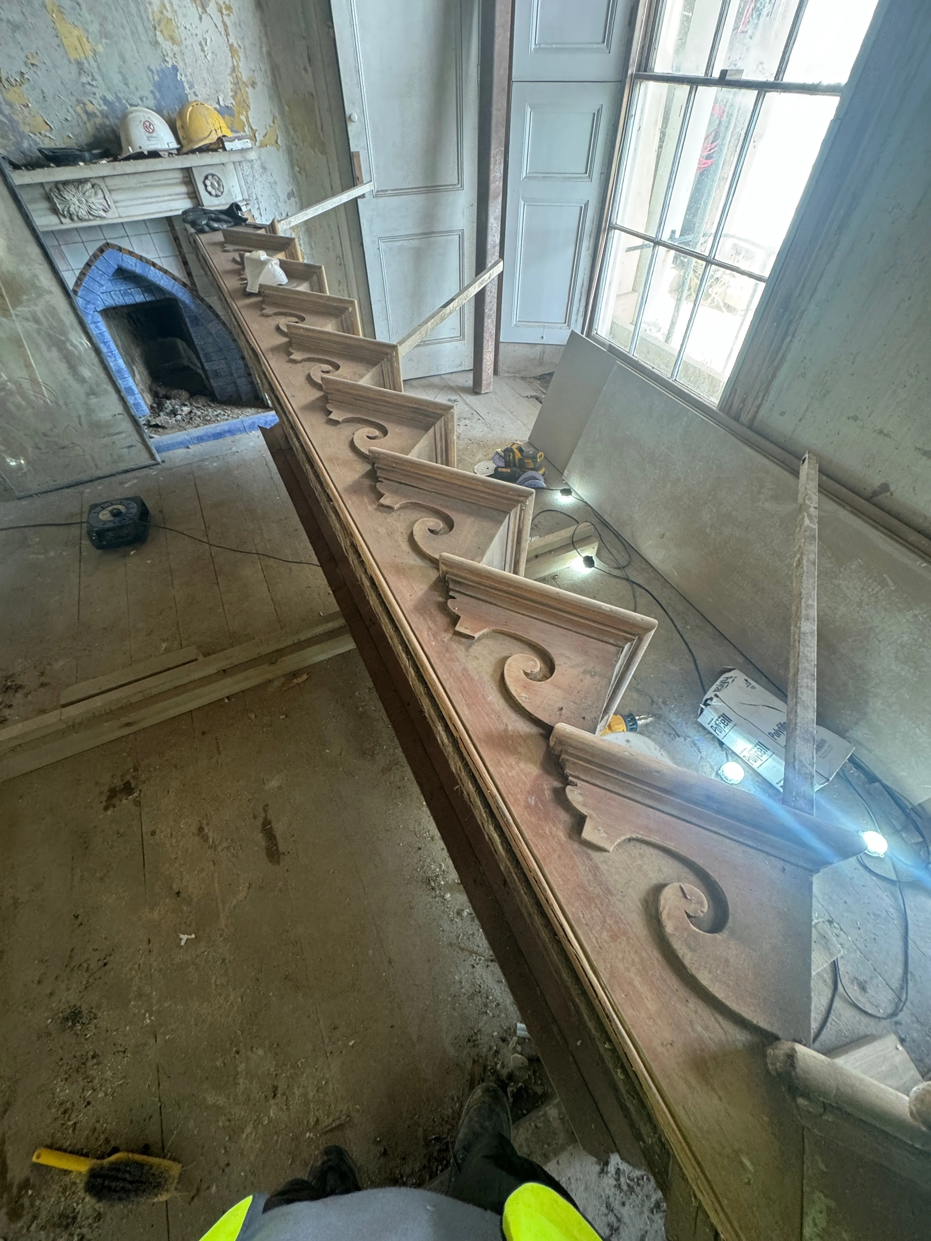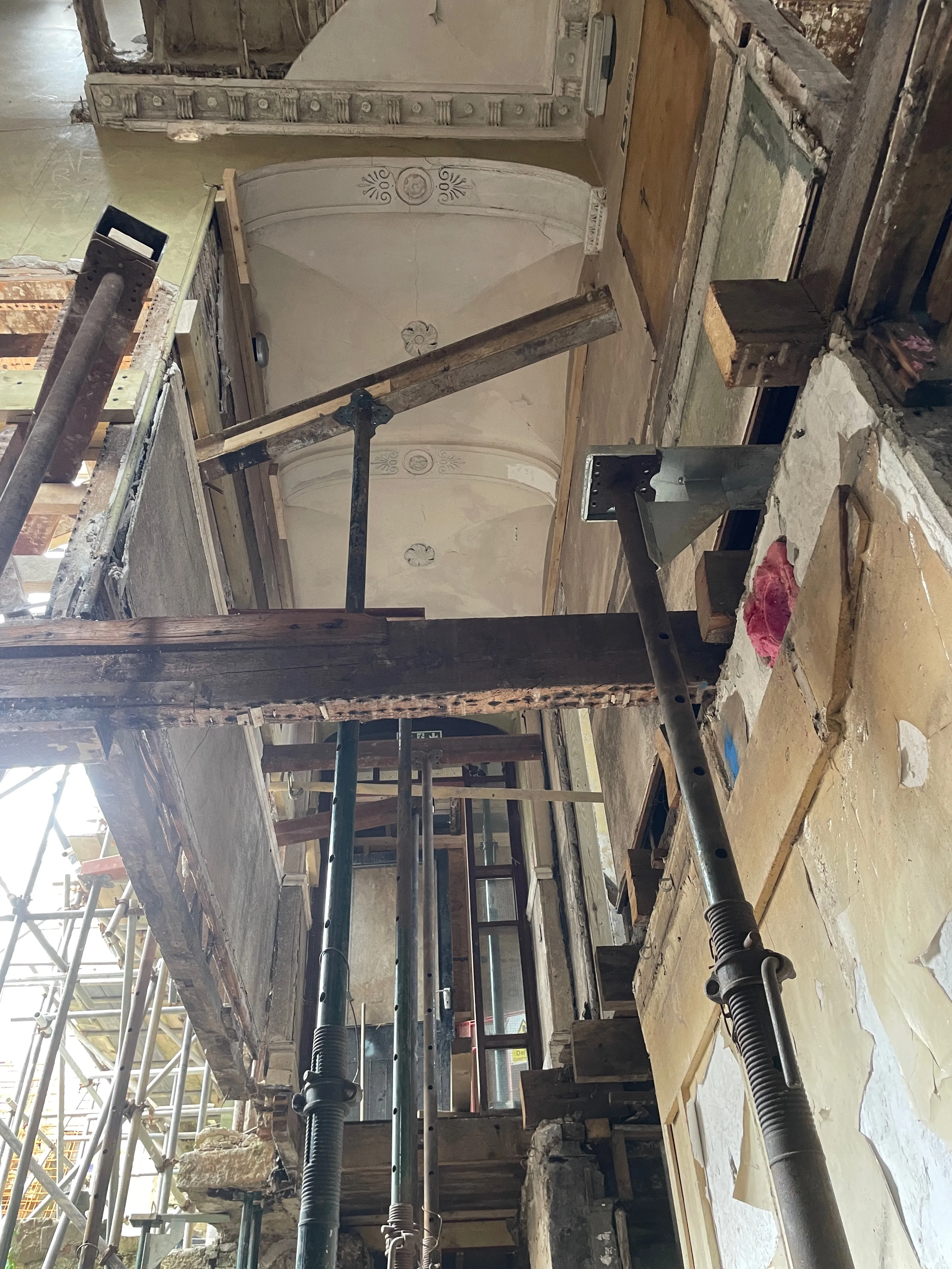 A 200-year-old Grade II listed building had fallen into catastrophic disrepair. Over 200 tonnes of masonry had collapsed, exposing that the structure was riddled with dry rot and it was held together only by extensive scaffolding and temporary supports. Structural engineers warned that lifting the entire roof and ornate period ceiling by 3 inches (7.5 cm) was impossible without hydraulics and risked total collapse. Foxton Group successfully executed the complex lift, structural underpinning and sympathetic restoration, meticulously preserving every historic feature with precision onsite joinery and unrivalled craftsmanship.